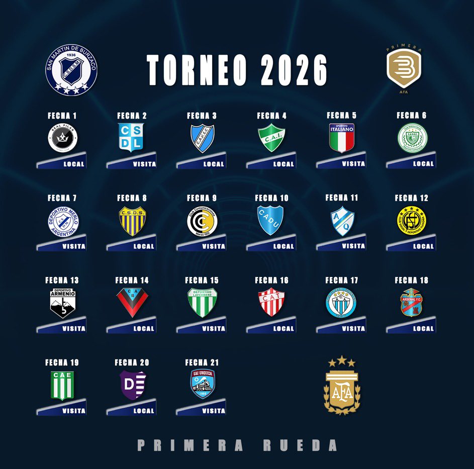 En su cuenta de X @SanMartinBurz publicó el programa de partidos para esta primera parte del año